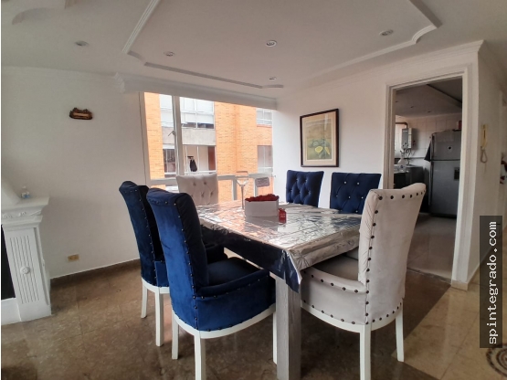 Cuenta con tres alcobas, estudio o cuarto de servicio, dos baños completos, amplia sala–comedor con chimenea, zona de lavandería independiente y se encuentra en sexto piso, ofreciendo tranquilidad y buena vista.